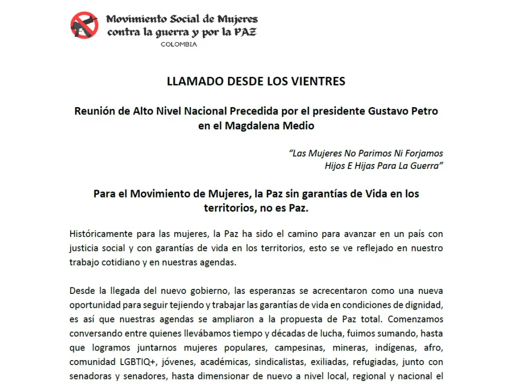 Desde la Mesa de Apoyo a la defensa de los DD.HH. de las mujeres y la Paz en Colombia damos ...