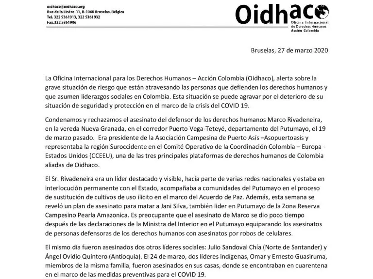 La Asamblea General de OIDHACO solicita garantías para las y los manifestantes en las protestas del Paro Nacional y alerta sobre el presunto uso de fuerza excesiva por parte de la Fuerza Pública